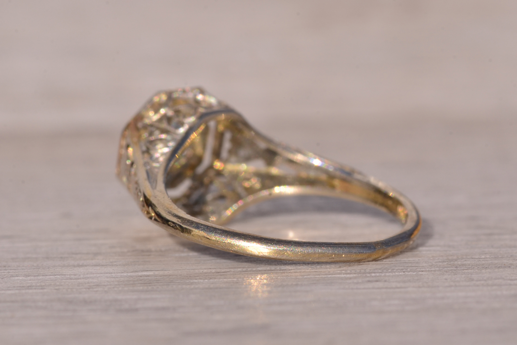 The Stocking: Antique Filigree Engagement Ring in White Gold - Image 4
