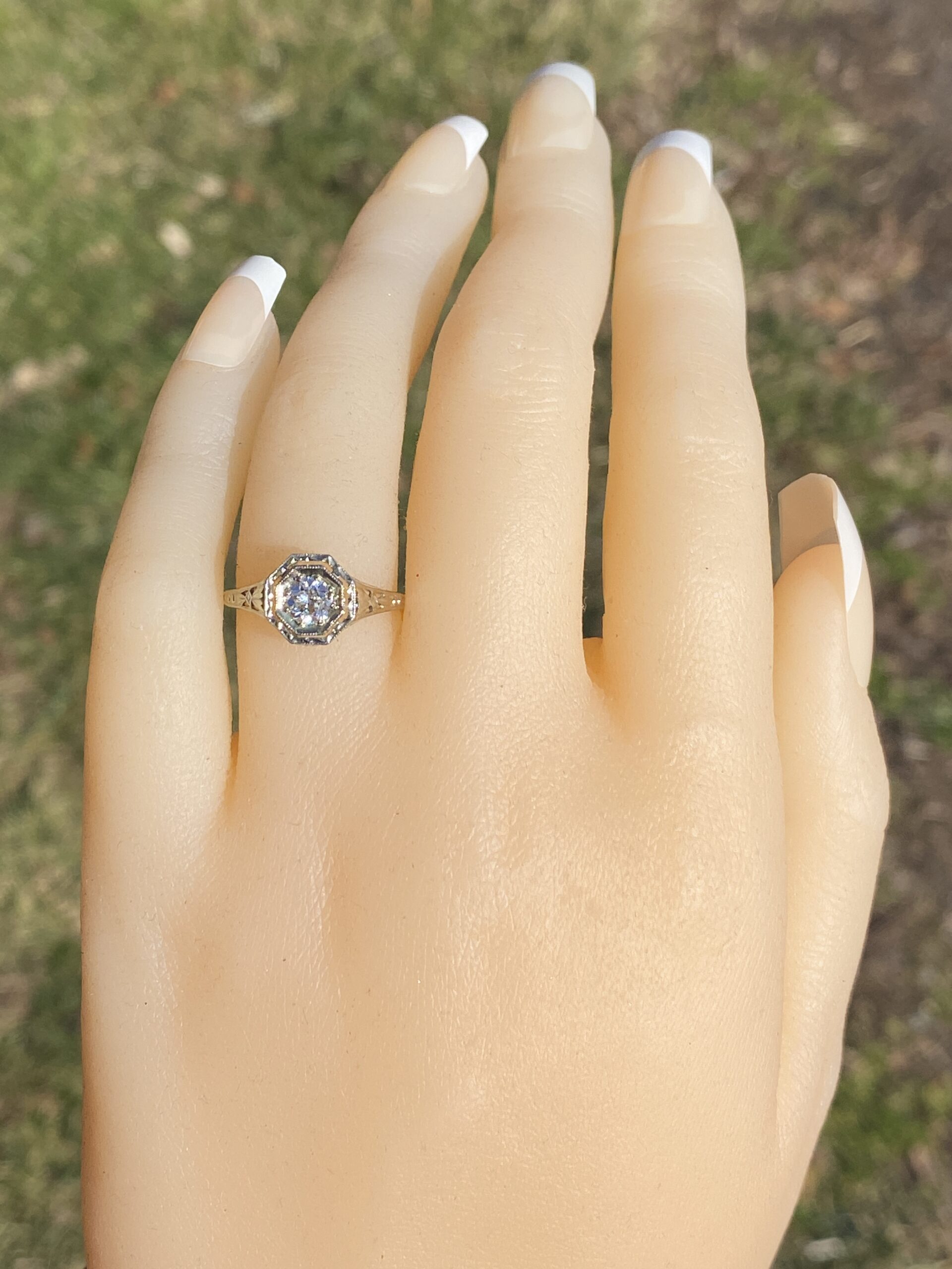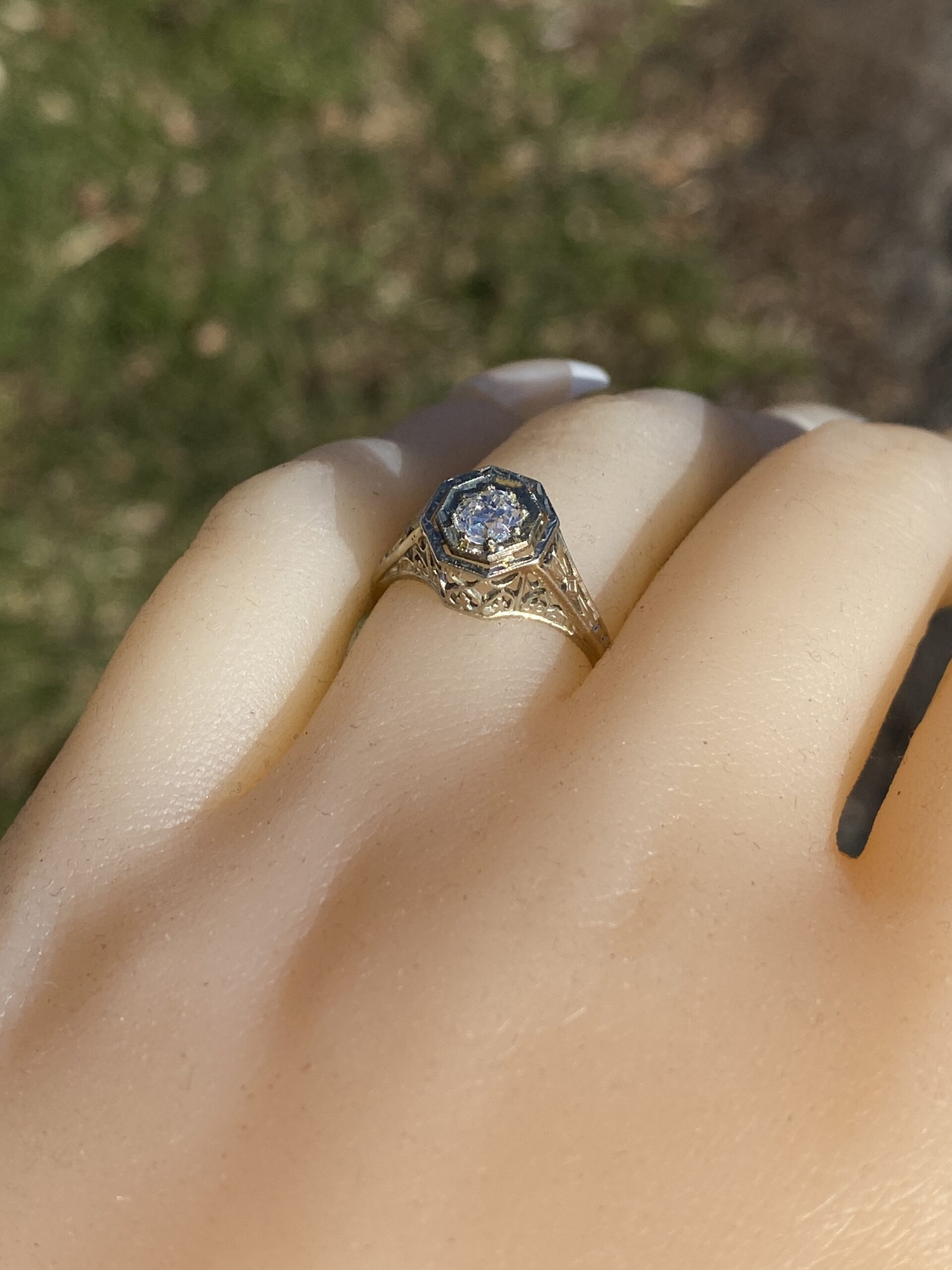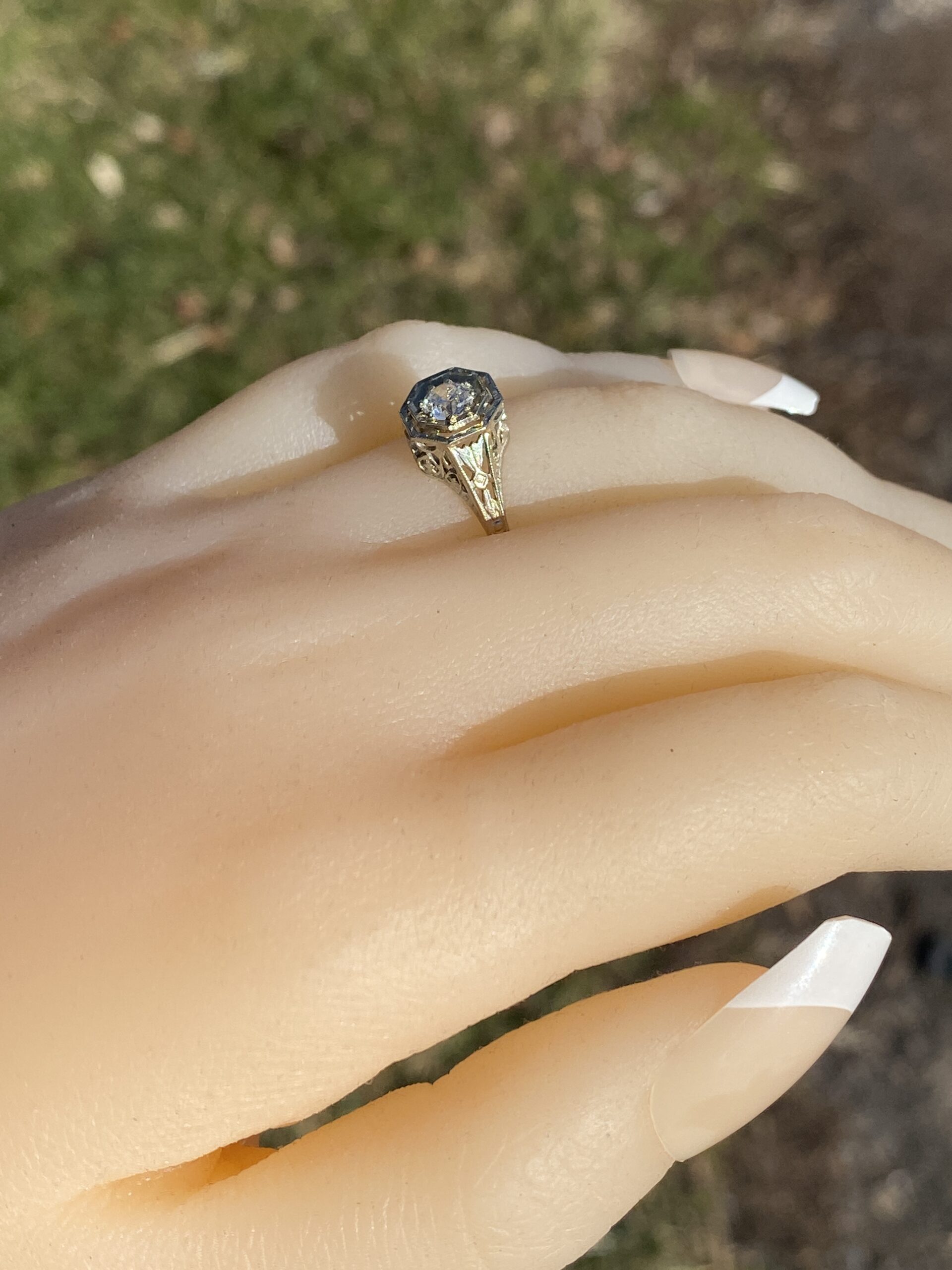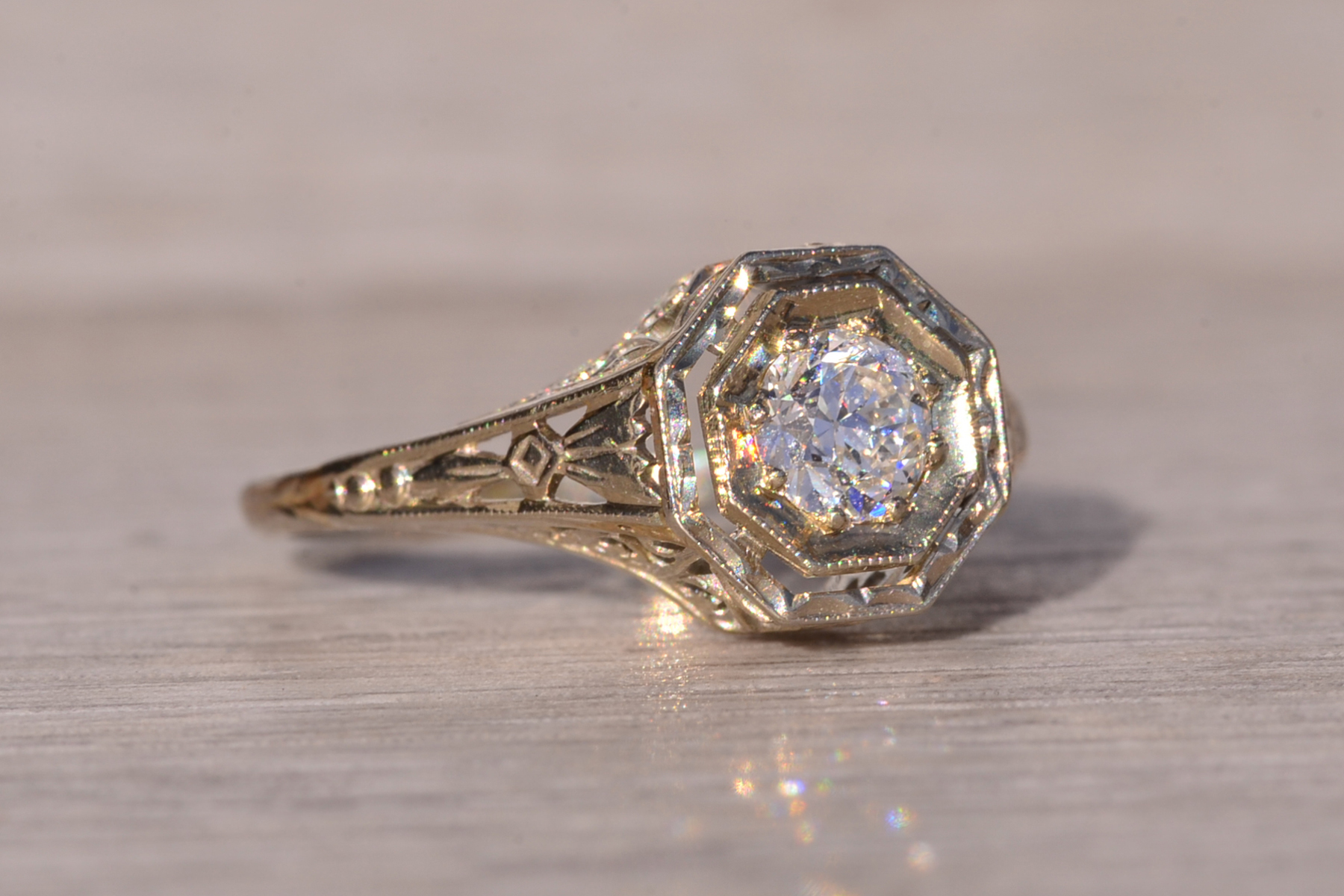Home / All Jewels / Engagement Rings / Antique Engagement Rings / The Stocking: Antique Filigree Engagement Ring in White Gold