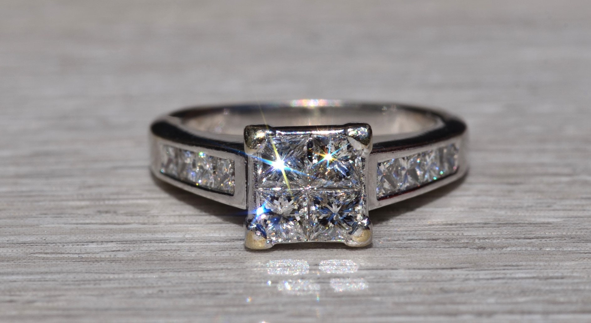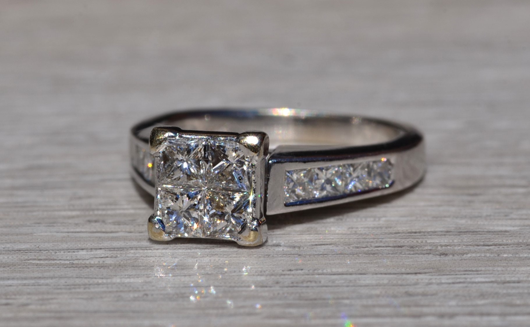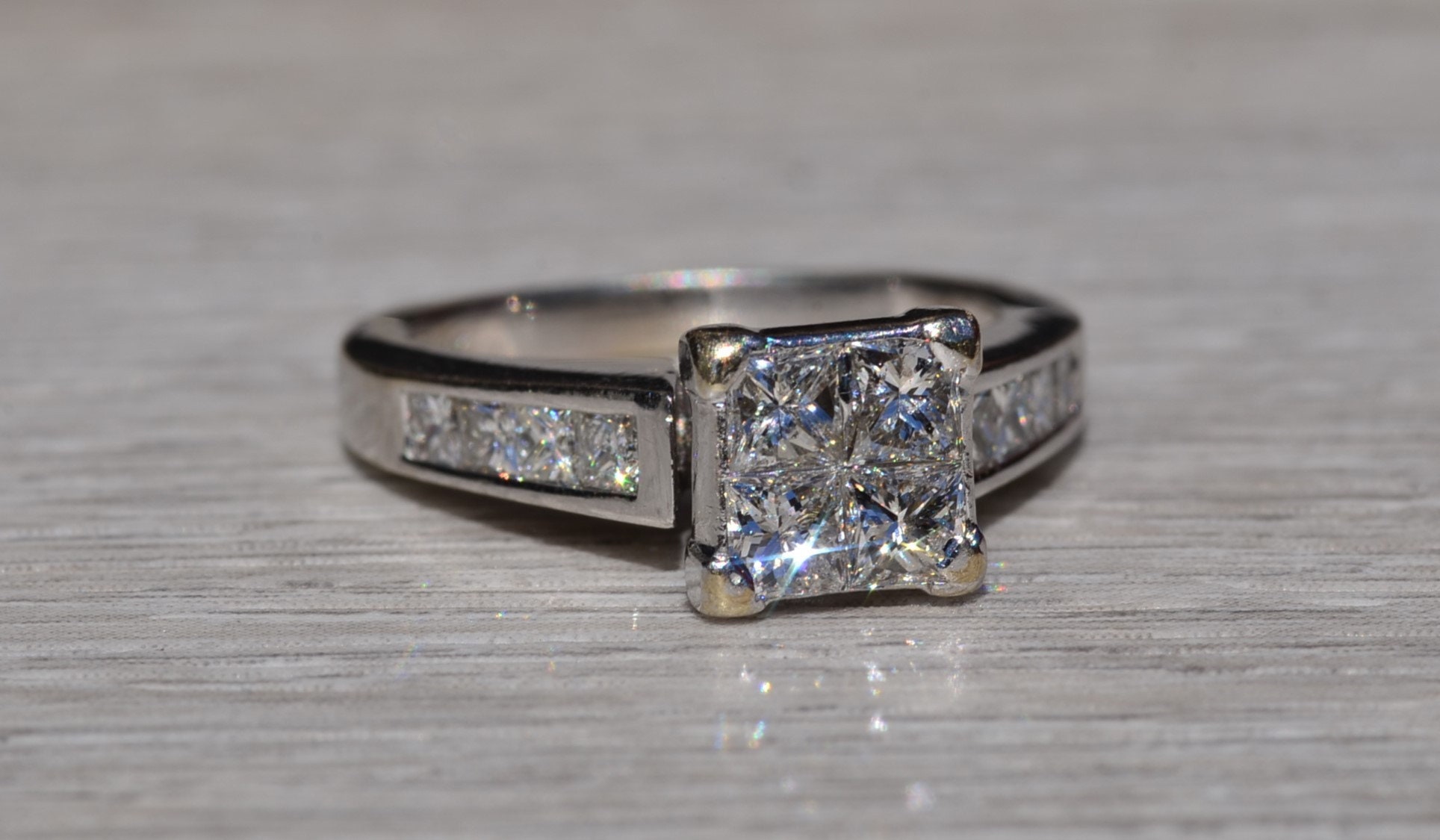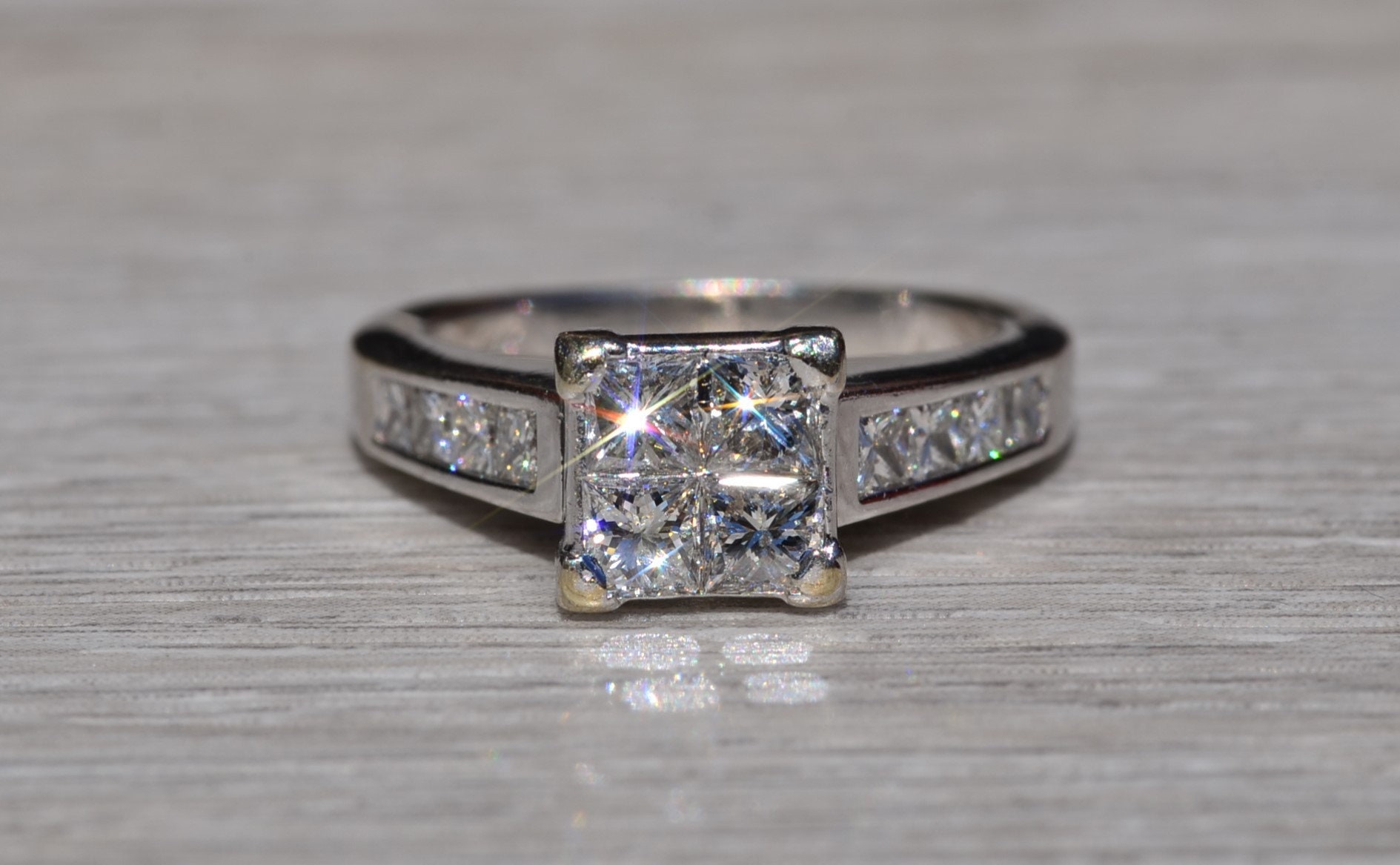 SKU: 23400353 Categories: Contemporary Jewelry, Engagement Rings, Final Sale Items Tags: 14 karat, 14 karat white, bridal set, diamond, diamond engagement, engagement ring, Gold, illusion set, infinity set, Ladies, ladies' ring, matching band, mystery set, mystery set ring, princess cut, vintage, vintage engagement, white, white gold ring, white gold set, women, women's ring