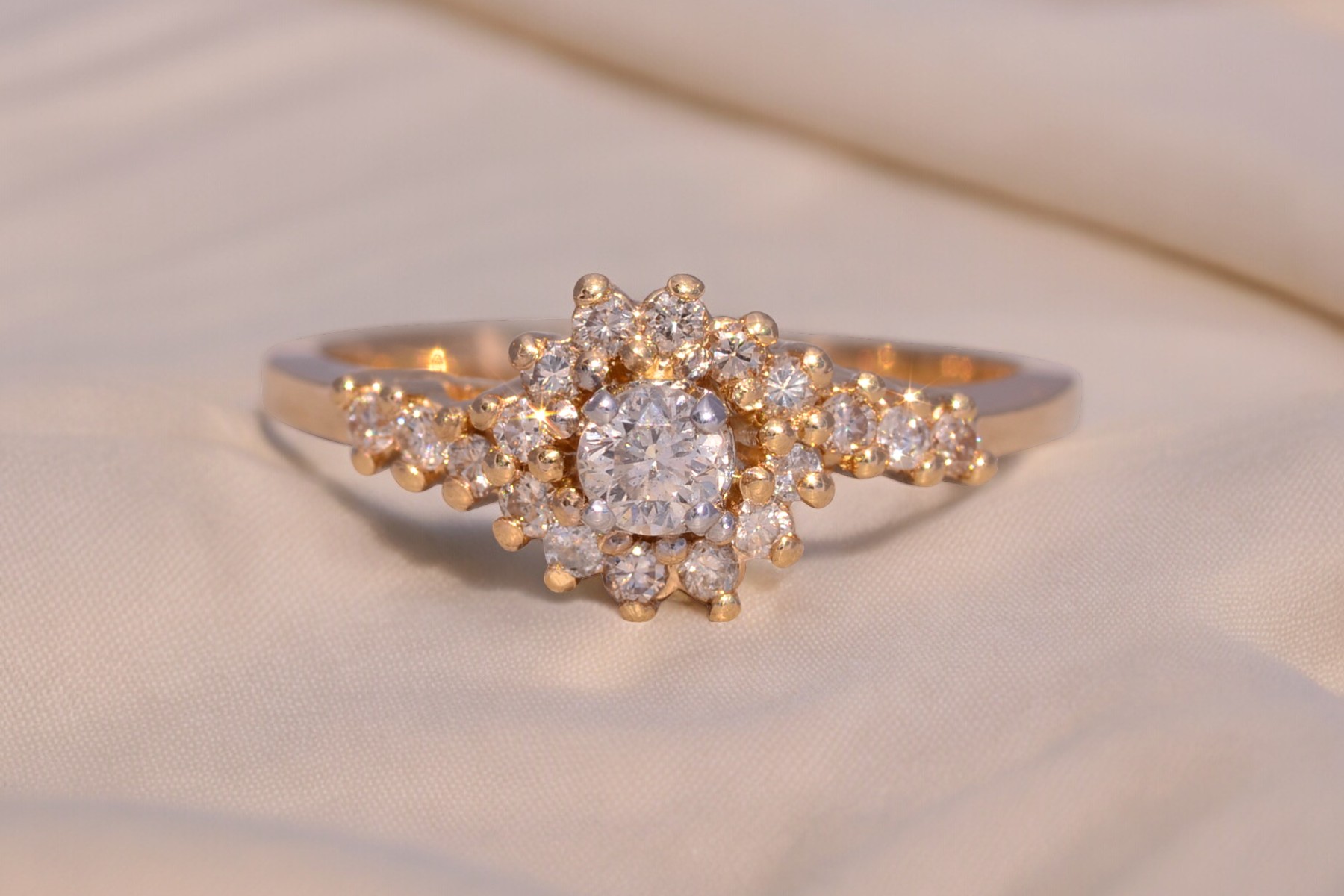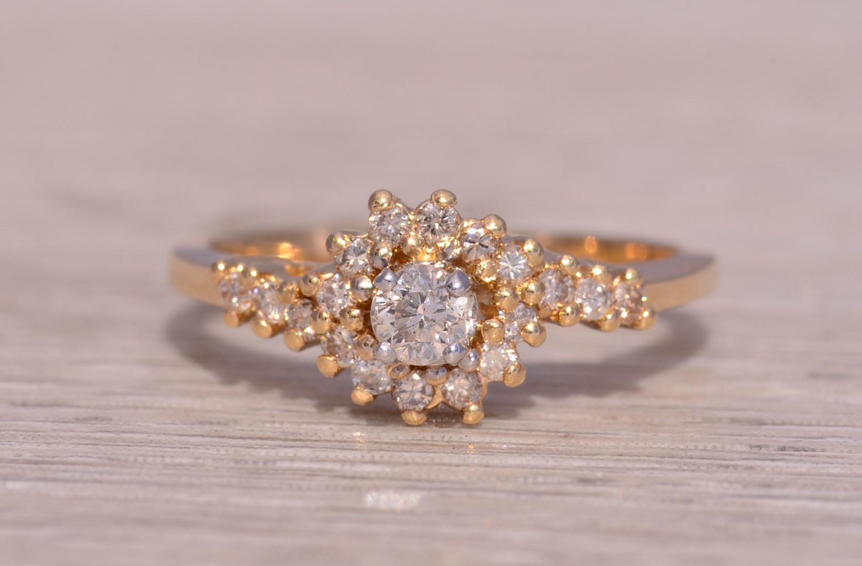 Home / All Jewels / Engagement Rings / Vintage Engagement Rings / The Timeless Bloom: Natural Diamond Engagement Ring in Yellow Gold