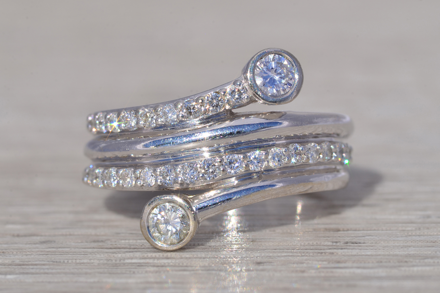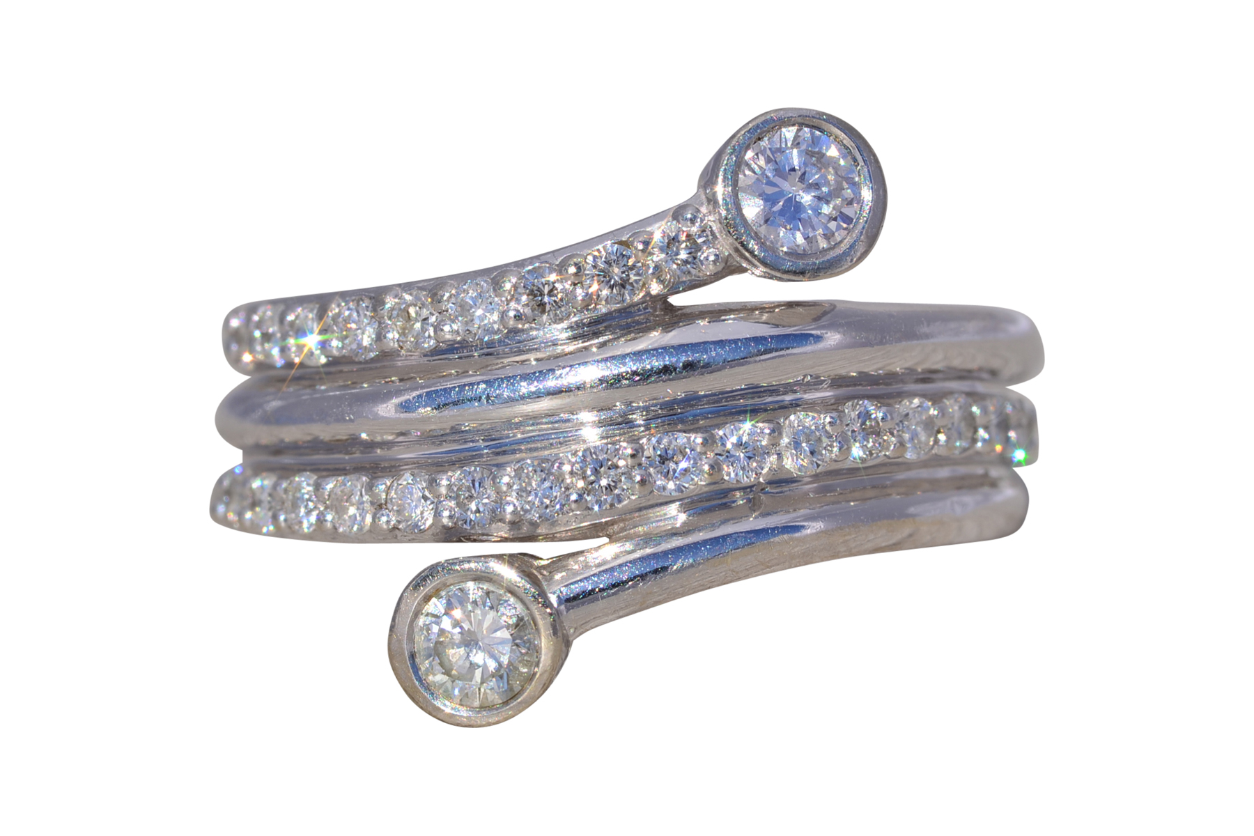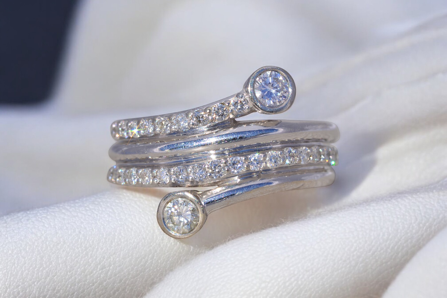 The Twin Orbit Wrap: Natural Diamond Bypass Ring in White Gold