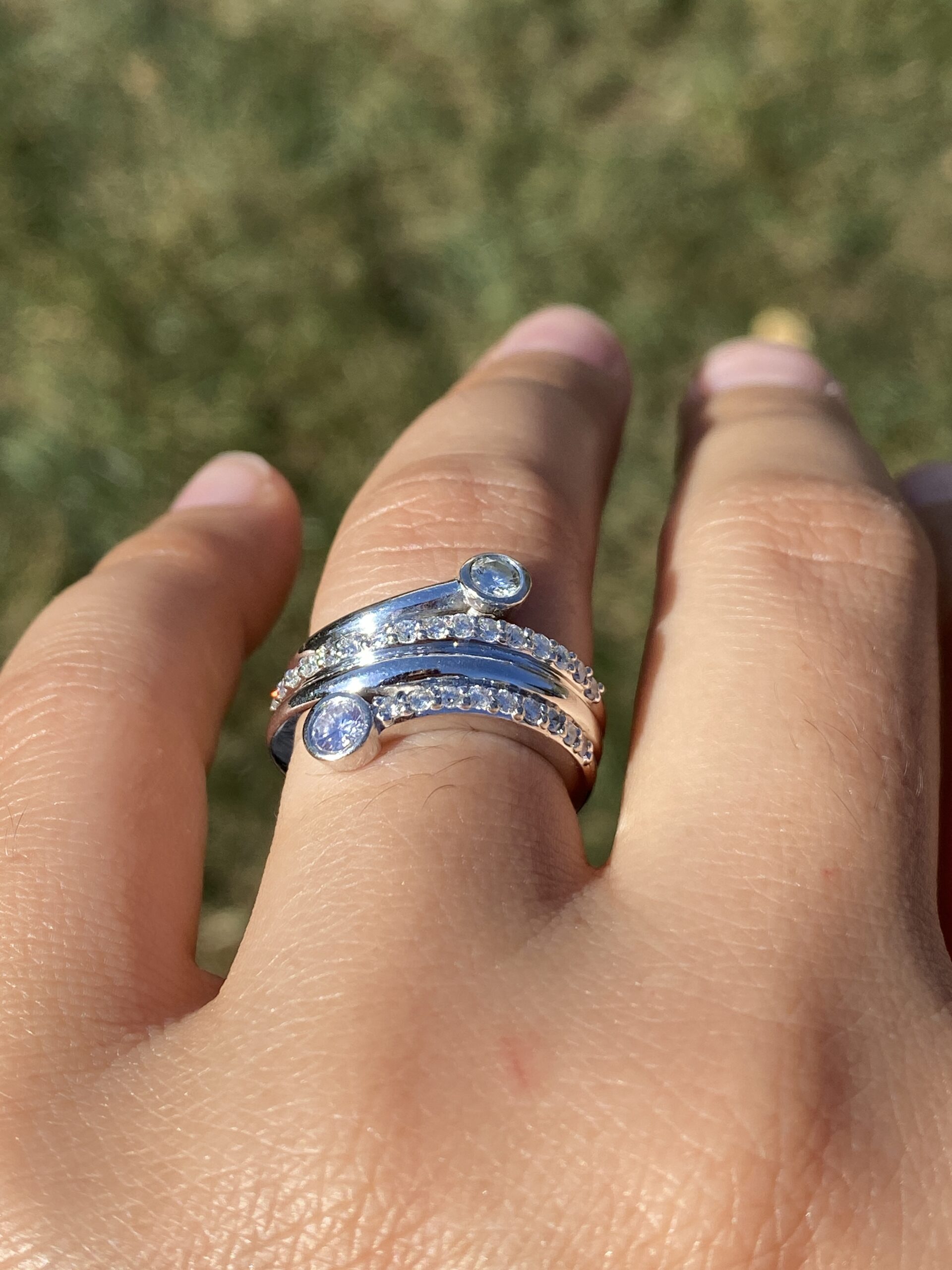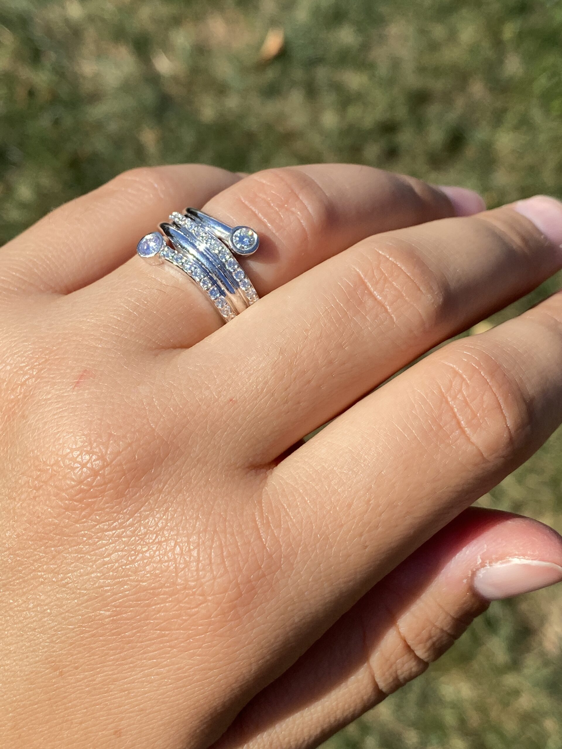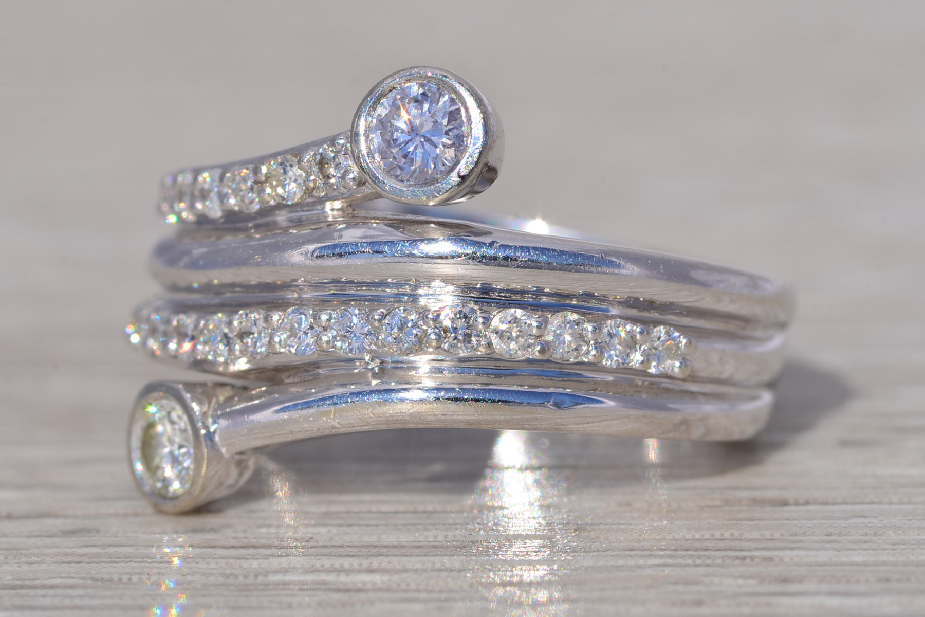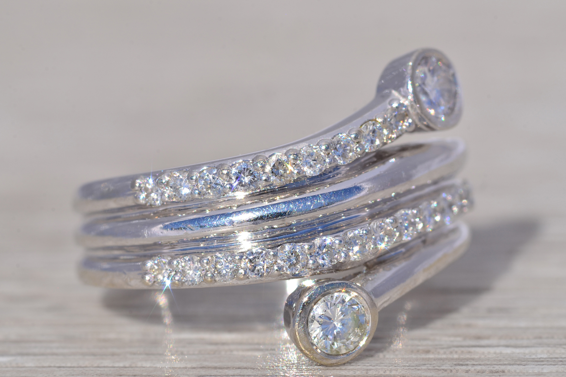 The Twin Orbit Wrap: Natural Diamond Bypass Ring in White Gold