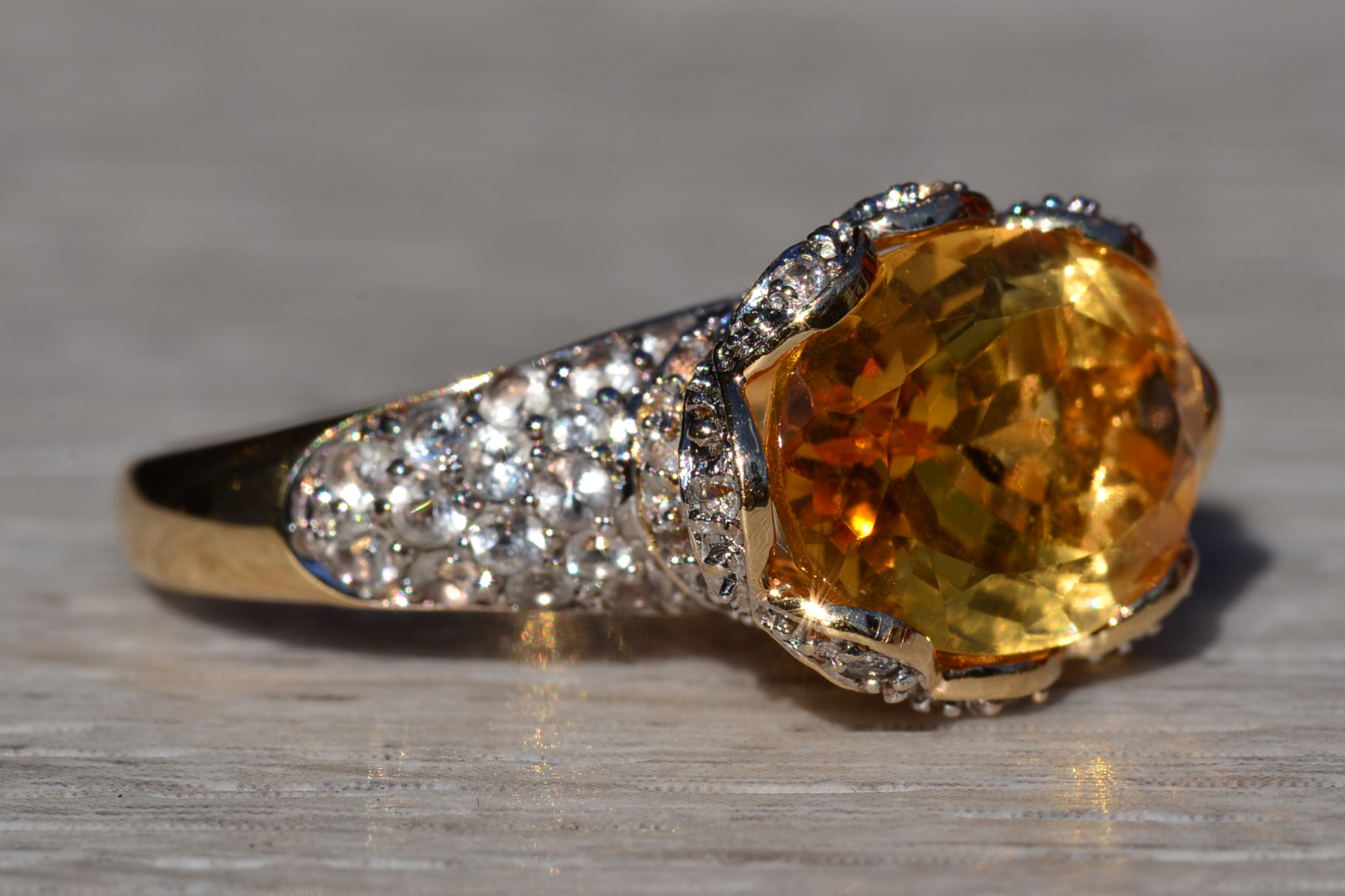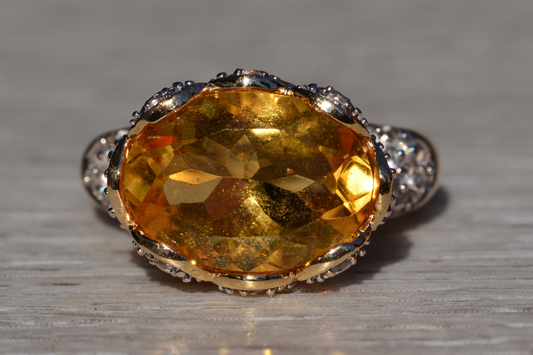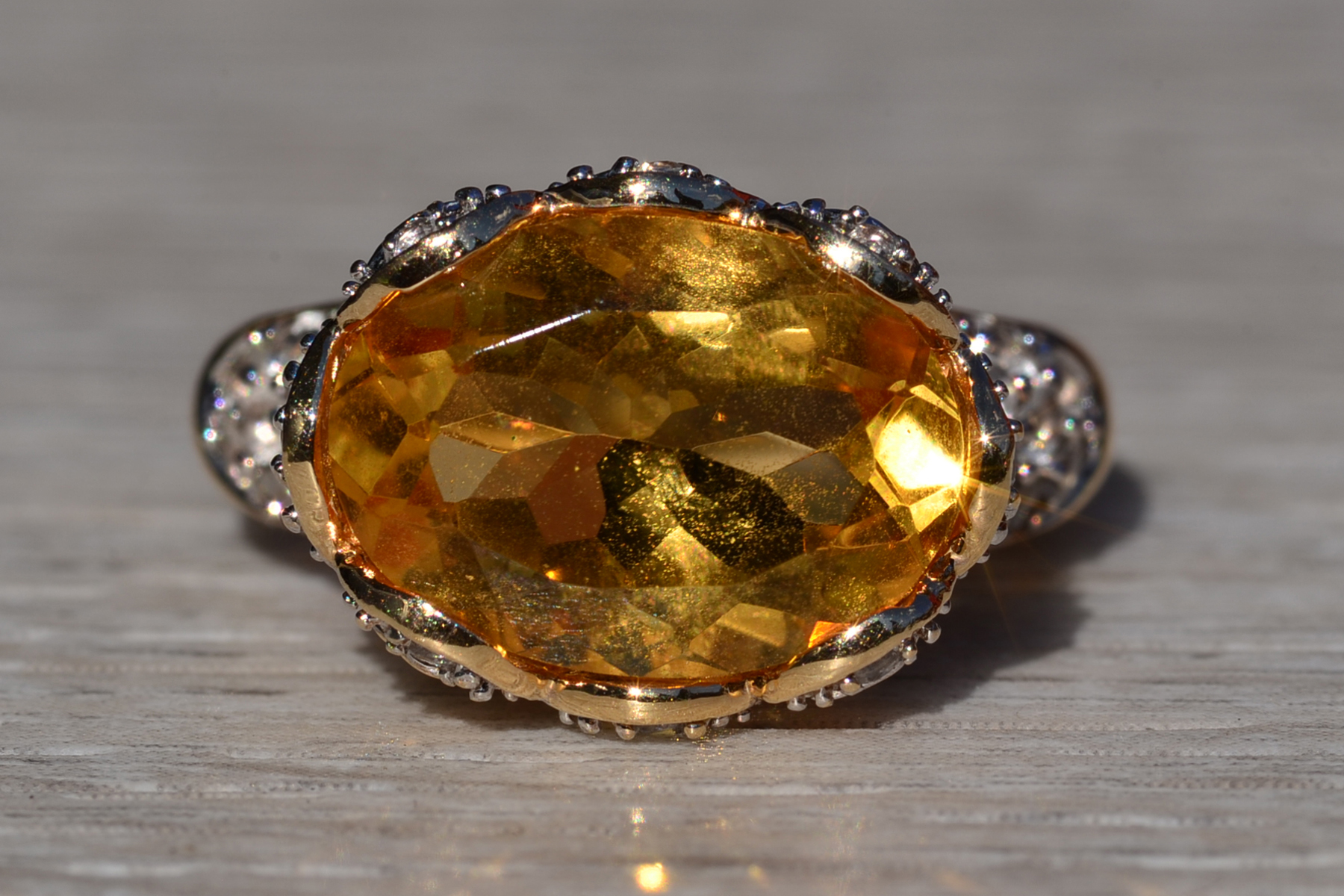 The Yarra Glen: Oval Brilliant Cut Natural Citrine Set East to West with Pave set Natural White Topaz