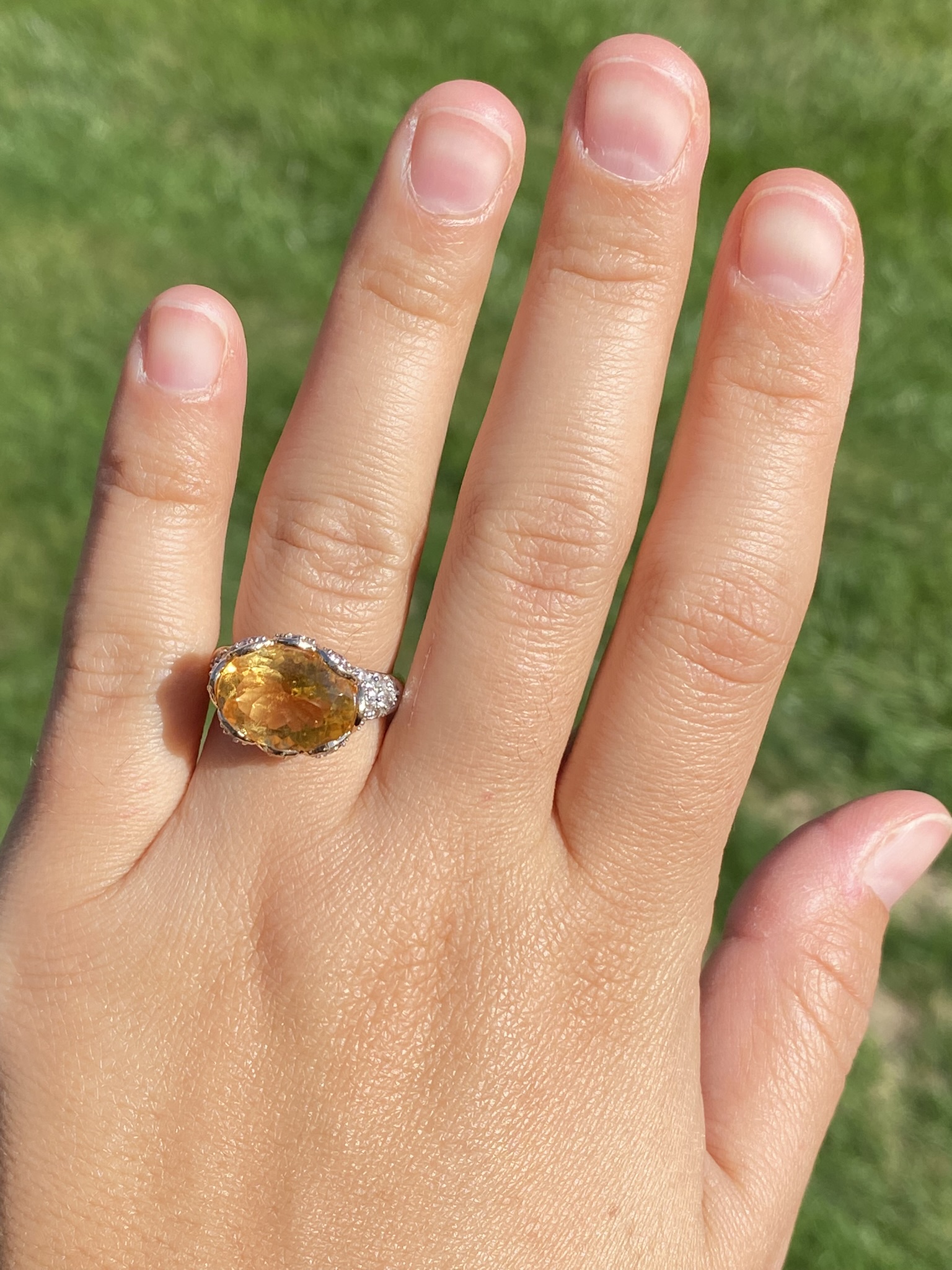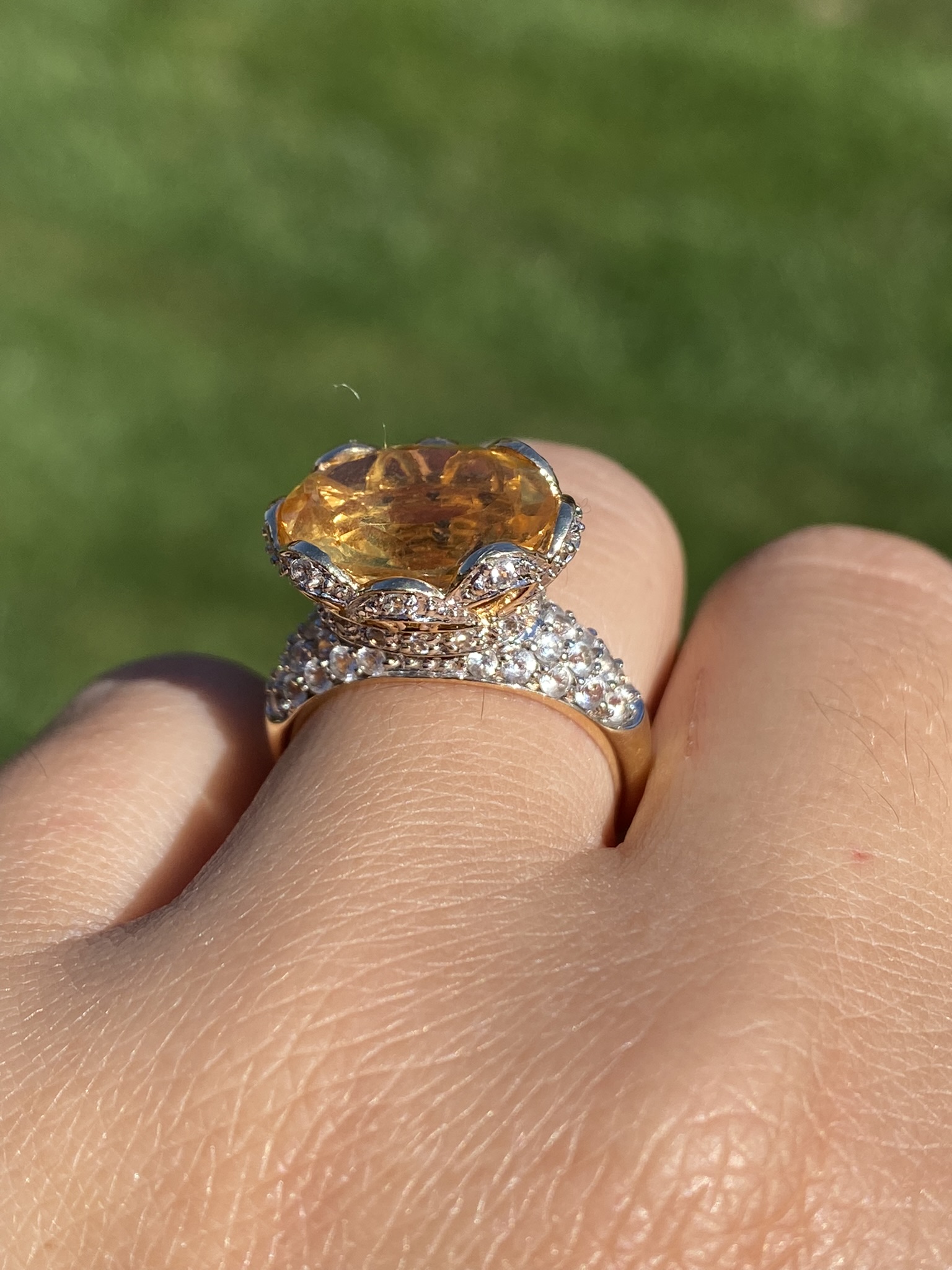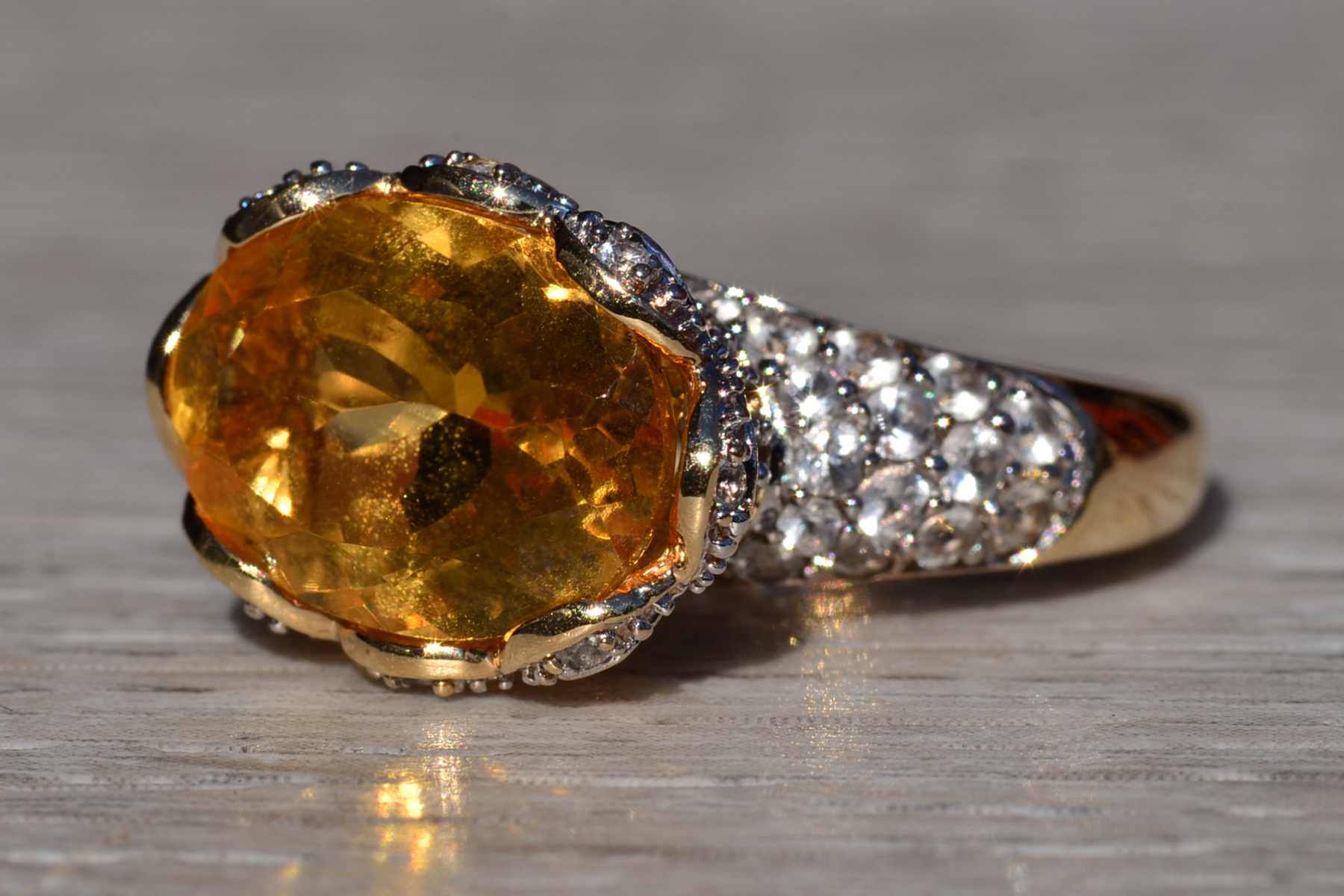 The Yarra Glen: Oval Brilliant Cut Natural Citrine Set East to West with Pave set Natural White Topaz