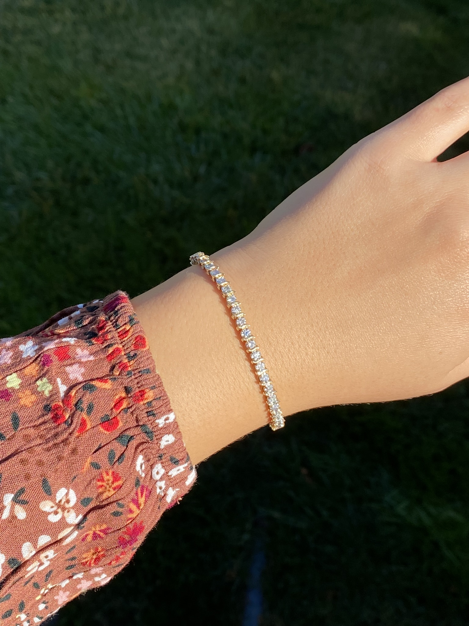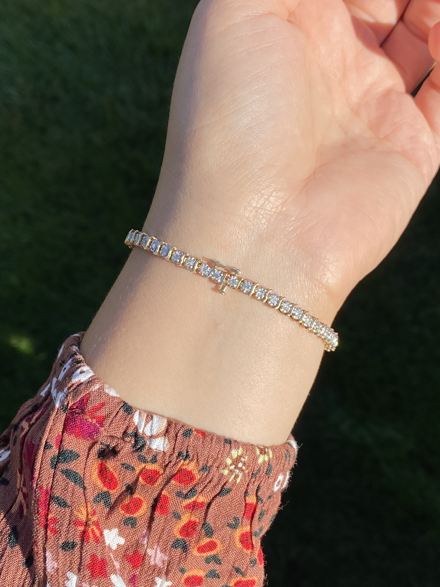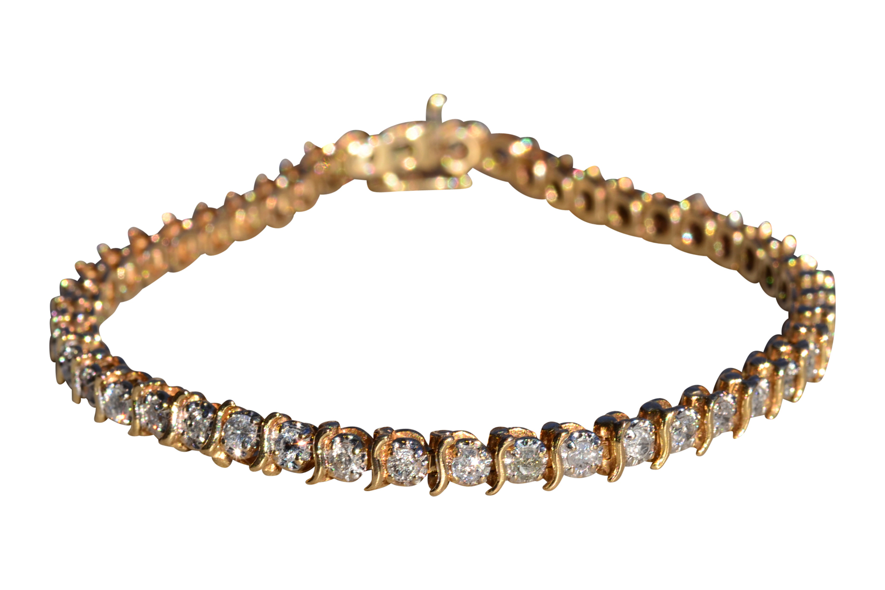 The Zambrano: Ladies 14K Yellow Gold 1.35CTW Diamond S Chain Tennis Bracelet. Crafted in durable 14 karat yellow gold, this ladies’ tennis bracelet features 1.35 total carats of natural round brilliant cut diamonds. The diamonds are separated by yellow gold S shape links in a classic pattern. The bracelet measures 7 inches in length and features a push style clasp with added safety chain for all day wearable security.